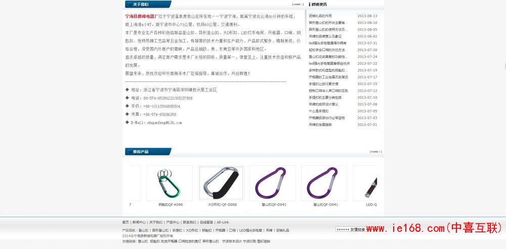 本厂是专业生产各种彩色铝制品登山扣、LED灯手电筒、开瓶器、口哨、钥匙扣工艺品等五金加工,有雄厚的技术力量和生产能力,产品款式繁多、精制美观、价格合理,深受国内外客户的青睐,产品远销欧、美、东南亚等许多国家和地区。